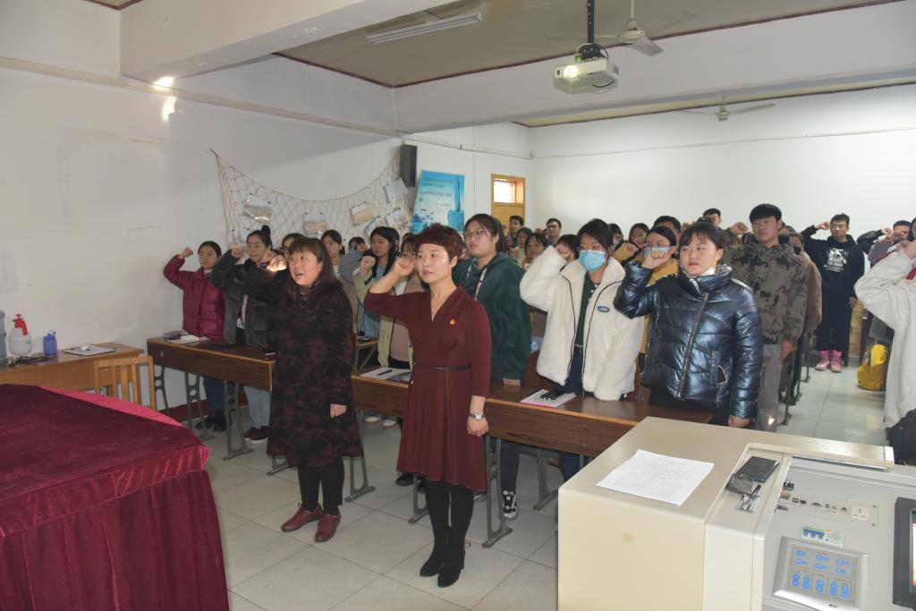 12月8日,ag旗舰厅官方网站新发展党员宣誓仪式在4教204举行,仪式由公司党政办公室田晓光老师主持,员工第一支部书记康文霞领誓,党委书记刘会娟讲话,员工党支部书记和64名新发展员工党员参加。