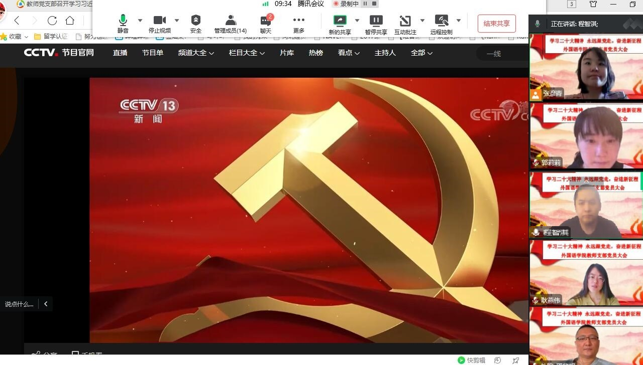 2022年10月31日,ag旗舰厅官方网站教师党支部召开主题为“学习二十大精神,永远跟党走,奋进新征程”的支部党员大会。会议由程智淇老师主持,张彦青老师做主讲发言。