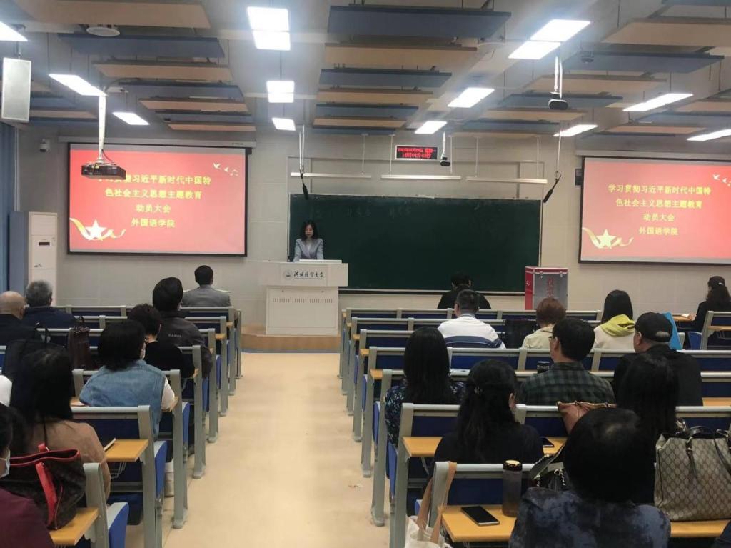 2023年4月28日,ag旗舰厅官方网站召开学习贯彻习近平新时代中国特色社会主义思想主题教育动员大会。外院和外语部全体教职工参加了动员大会。