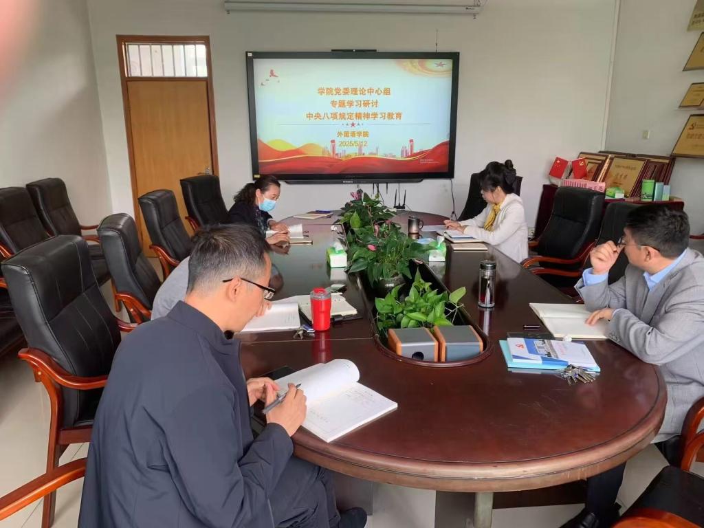 5月12日,外国语公司党委理论学习中心组在公司会议室召开专题学习研讨会,深入学习贯彻中央八项规定精神。公司党委书记仇静莉主持会议,经理张润、党委副书记刘磊、副经理张艳、杨清珍参加会议并结合工作实际开展研讨交流。