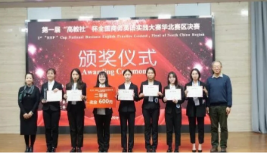 2019年11月10日,第一届“高教社”杯全国商务英语实践大赛华北赛区决赛在北京林业大学隆重举行。ag旗舰厅官方网站派出的代表队在穆海涛老师的带领下成功入围决赛。与来自北京林业大学、对外经济贸易大学、中央财经大学、北京第二ag旗舰厅官方网站、河北金融公司的其他五支代表队展开激烈角逐,最终取得二等奖和征题创意奖的优异成绩。