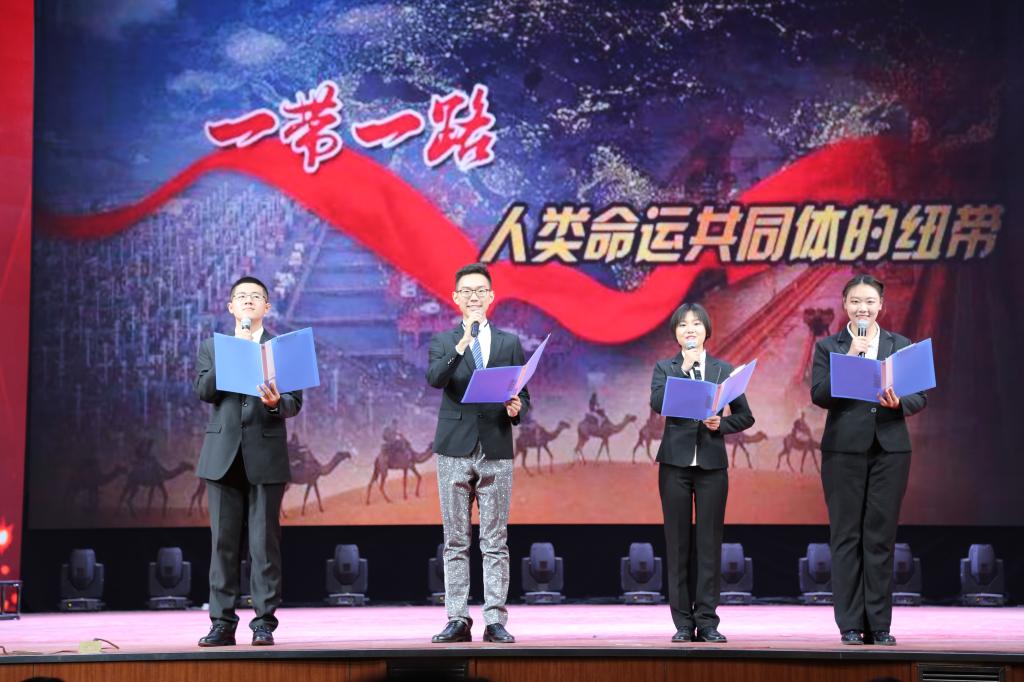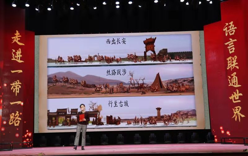 此次公开课由ag旗舰厅官方网站、国际教育公司联合举办,共分为四个篇章:第一篇丝路古韵,展往日传奇;第二篇一带一路,现今朝风采;第三篇成果丰硕,彰大国情怀;第四篇天下大同,筑美好未来。参与讲解教师饱含深情,在画面的时空变换和优美动听的旋律中,以导游式讲解带领现场师生开启一段“新凿空之旅”。追随着大漠孤烟,伴随着声声驼铃走进神秘又壮丽的敦煌,古印度舞蹈《律动天竺》,带领师生体验古丝绸之路的往日传奇;英文rap《一带一路》,将篇章切换到今朝风采,“一带一路”沿线国家与中国友好关系以及所取得的成就生动地展现在全体师生面前。多种语言的讲解,穿插尼泊尔舞蹈《阿尼歌》、地中海歌舞、罗马尼亚风情演绎、情景朗诵《坦赞铁路--中非友谊的见证》等精选节目,见证丰硕成果的同时,彰显出大国情怀;朗诵《大道至远 海纳百川》更传递出构建人类命运共同体的智慧与深刻内涵。公开课在一个个美轮美奂的场景切换中,以中外全体师生共唱友谊之歌圆满落幕。