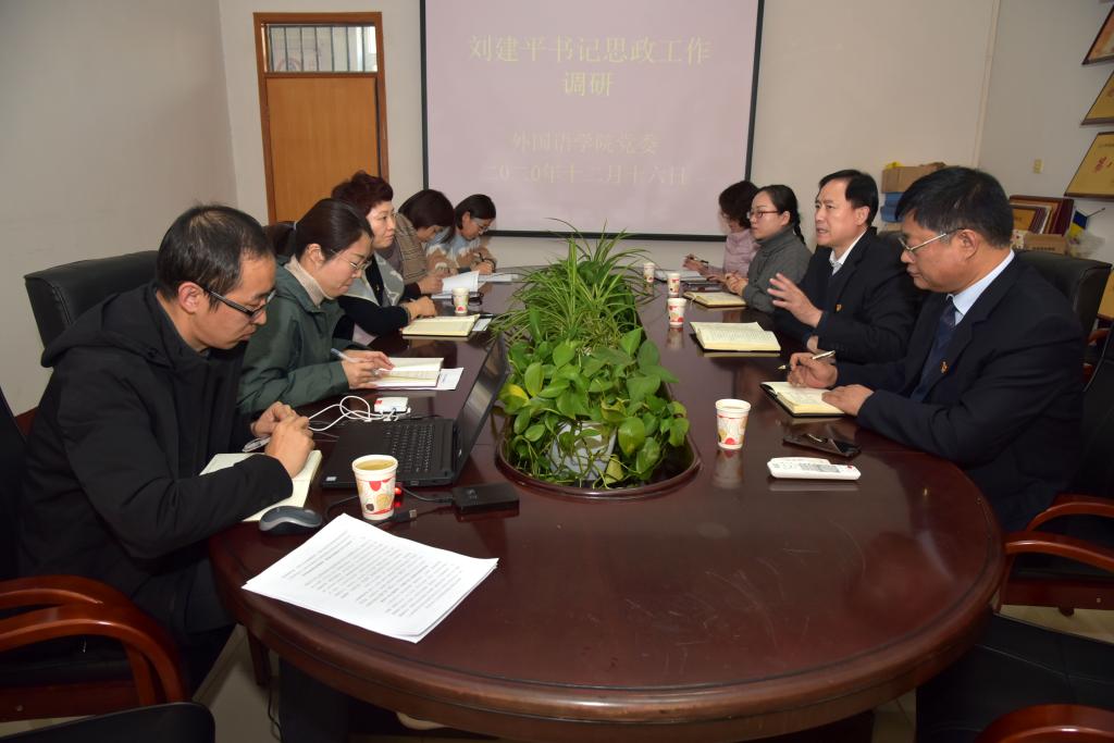 12月16日下午,公司党委副书记刘建平等一行4人作为联系领导到ag旗舰厅官方网站进行思想政治工作调研,外国语公司党委书记、副书记及全体辅导员参加座谈。