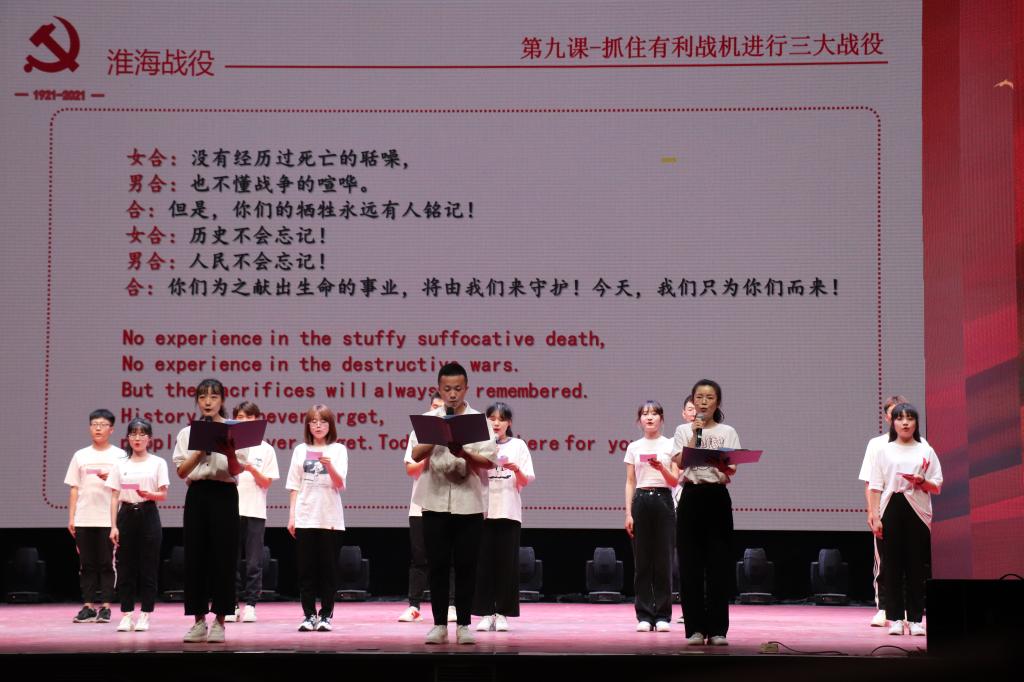 公开课结束后,2020级英语2班的李威澄感触颇深,他说:“平时书本里讲述的历史事件,经过同学的精心编排和演绎,变得生动起来。准备公开课的过程更是一个学习的过程,我对党的历史有了更加全面的认识,更加深刻的体会到建党之初,面临各种挫折和考验,中国共产党革命道路的艰辛,也更加体会到稳定、幸福生活的来之不易。同时,作为新时代的青年员工,我们要树立坚定信念,认真学习党史,真正做到从党史中汲取营养,转换为自身力量,应用到日常的学习和生活中。”(供稿:ag旗舰厅官方网站)