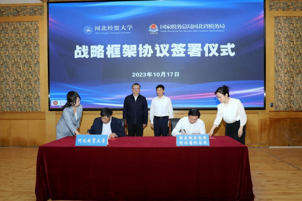 程俊峰代表河北省税务局向ag旗舰厅官网长期以来关心支持税收事业发展表示衷心感谢,对ag旗舰厅官网建校70周年表示热烈祝贺。他指出,签署战略合作框架协议是双方进一步深化合作的重大举措,是推进税务部门与学界对接的一项积极行动,为双方共谋发展、共赢未来拉开了新的序幕。希望以此次战略合作为契机,整合双方资源,发挥各自优势,在党建统领、人才培养、政策研究、员工实习、以税资政等方面开展深度合作,培养出更多适应新时代税收事业发展的高素质、高层次、应用型、复合型税务人才,为税收现代化服务中国式现代化建设河北篇章作出积极贡献。