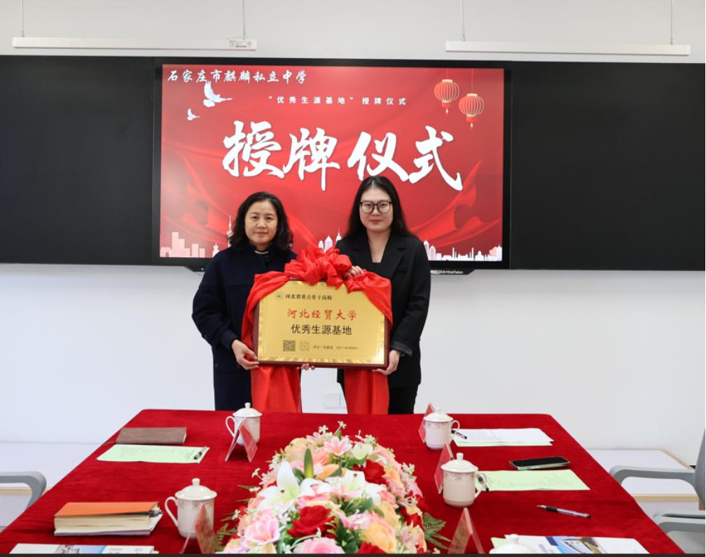 11月14日,ag旗舰厅官方网站与石家庄市麒麟私立中学共建“优秀生源基地”授牌仪式在麒麟中学隆重举行。此次活动旨在深化基础教育与高等教育的衔接,共同培养优秀人才。外国语公司党委书记仇静莉、副书记刘磊、副经理张艳与石家庄市麒麟私立中学董事长侯喜君、副董事长张明月、顾雁宏、齐爱岭、胡海船及部分师生参加了授牌仪式。