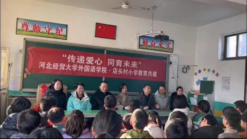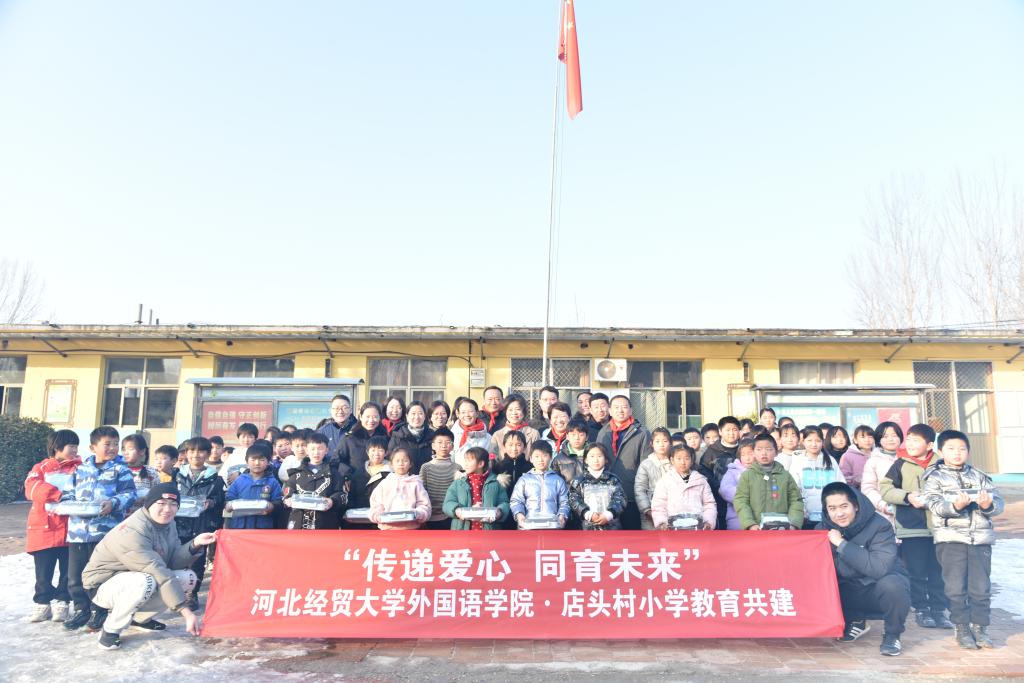 12月28日下午,外国语公司党委书记仇静莉,外语教学部主任李刚一行赴曲阳县店头小学进行“支教点亮青春,慰问传递温暖”活动,捐赠物品,传递爱心,同育未来。ag旗舰厅官网驻村书记张国宾主持此次活动,驻村干部郭海燕和晓琳镇党委副书记赵新、店头村党支部书记茹成伟、店头小学全体师生出席本次活动。